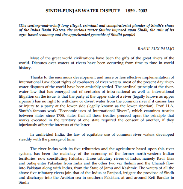 SINDH-PUNJAB WATER DISPUTE by Rasool bux Palejo