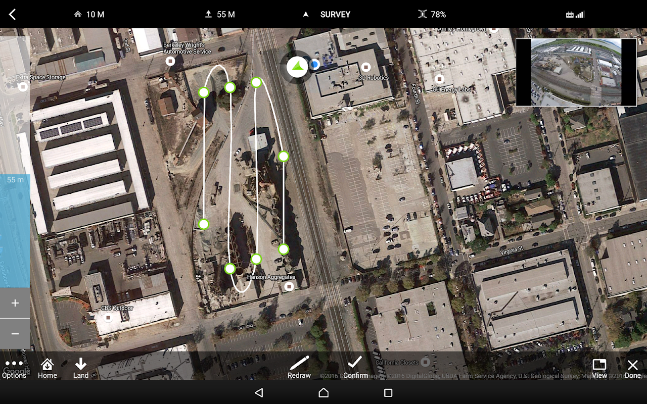 Simply outline the area you want to survey with your fingertip and Solo automatically plans and executes both flight and image capture, gathering all the data you need to create 2D maps and DEMs. Images are processed in Autodesk ReCap to create orthorectified, georeferenced mosaics.