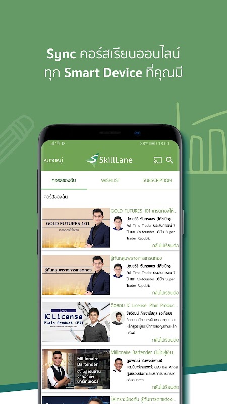 SkillLane est la première et la plus grande plateforme de cours en ligne de Thaïlande. Nous fournissons une plate-forme aux experts de toute profession pour créer des cours qui peuvent être offerts au public. Avec plus de 3 000 cours en ligne sur l'investissement en actions, la conception, le marketing, l'informatique et plus encore, tout le monde peut apprendre n'importe où, n'importe quand.