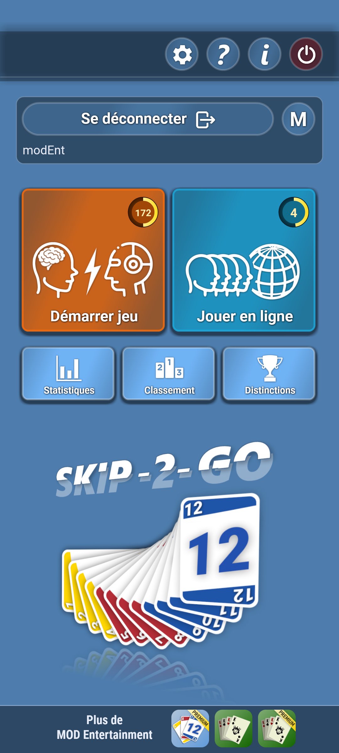 • Choisissez si vous jouez classiquement avec «quatre piles de séquence ascendantes» ou avec «deux piles de séquence ascendantes et deux descendantes»