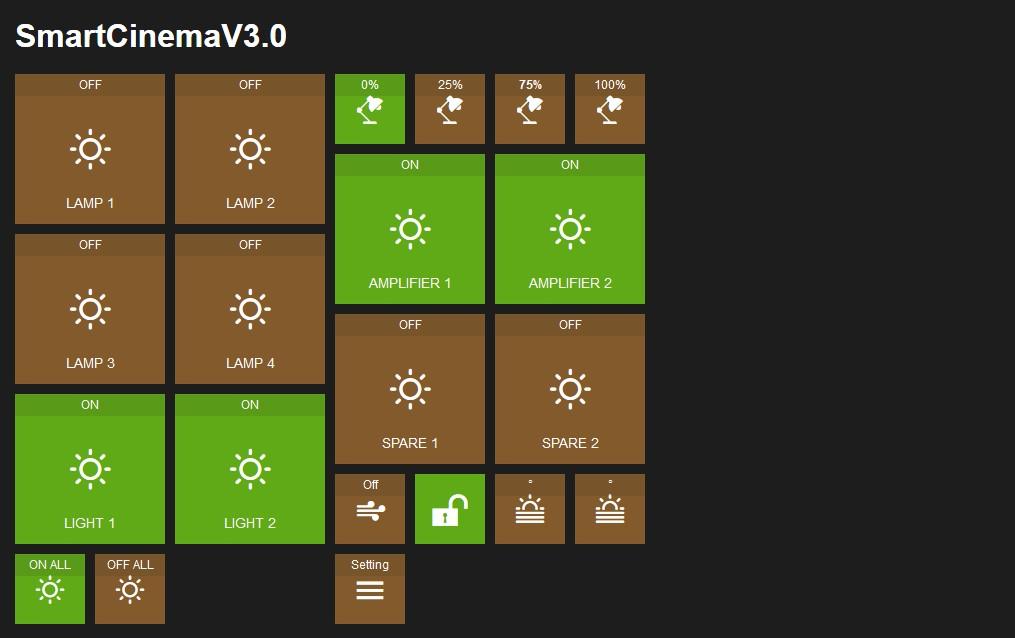 Aplikasi yang digunakan untuk mengdendalikan berbagai beban elektronik via jaringan lokal bisa berbentuk kabel ataupun wifi. Dengan tampilan yang bertema metro, style ala windows 8 dengan corak warna hijau alpukat dan coklat dengan icon khusus yang mewakili beban yang akan dipantau atau dikendalikan.
