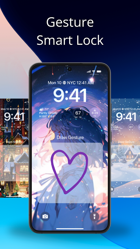 • Dessin d'écran de verrouillage gestuel : dessinez un geste pour déverrouiller votre téléphone. Cela peut être un cercle, une étoile, un cœur ou toute autre forme de votre choix.