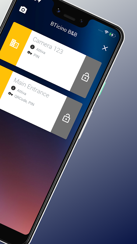 Une fois devant la porte de votre chambre, pour ouvrir une porte extérieure de la structure ou pour accéder aux services communs, appuyez sur le symbole de la serrure dans l'application et placez le code QR devant la porte à ouvrir.