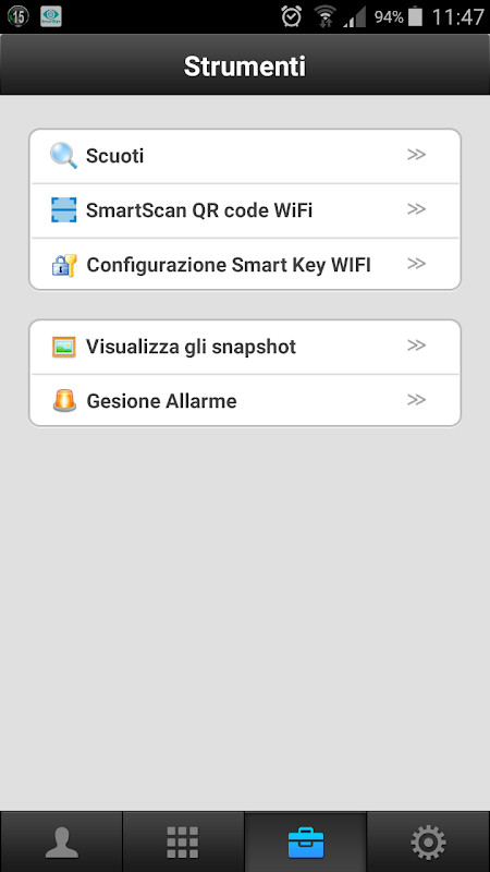 "Pensa alla comodità di controllare ogni stanza della tua casa con un semplice clik dal tuo smartphone, ovunque sei! Grazie all'App potrai vedere int empo reale l'interno della tua abitazione. oltre a questo ti permetterà di gestire molte altre funzionalità.Gestisci i movimenti dell'IP camera direttamente dall'app, punta l'obiettivo della SmartEye ovunque tu voglia.Grazie a SmartEye sarà possibile vedere ma anche comunicare con chi si trova dall'altra parte. Lo speaker ed il microfono integrati vi permetterà di utilizzarla come un vero e proprio interfono."