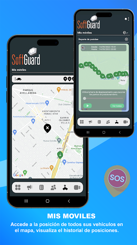 - *Suivi des véhicules en temps réel* : surveillez tous vos véhicules grâce aux trackers GPS intégrés (Mes téléphones).