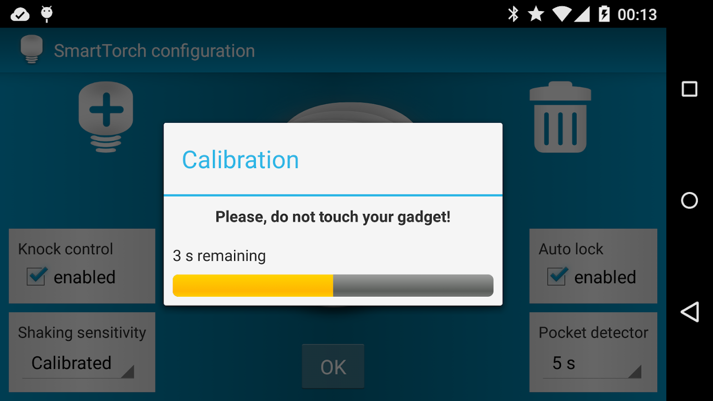 • determines whether a accelerometer (shake sensor) enabled, which allows to keep the flashlight on until you don't put the gadget on the table