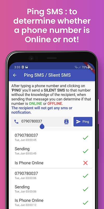 Ping SMS, alias SMS silencieux pour vérifier si le téléphone d'un destinataire est éteint ou en ligne.