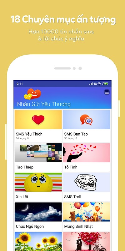 - 📚Hơn 10000 Tin Nhắn SMS & Lời Chúc được chọn lọc kỹ càng cho 18 chủ đề và ngày đặc biệt trong năm.