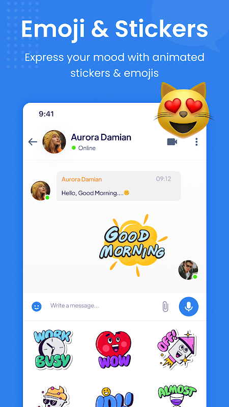 - Use stylish emojis to express emotions or send great stickers via messages app