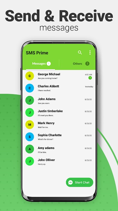 SMS Prime propose également une fonction de filtrage qui stocke tous vos SMS reçus de vos contacts dans la liste "messages" et tous les autres SMS inconnus allant dans la liste "Autres", ce qui vous fait gagner un temps précieux.