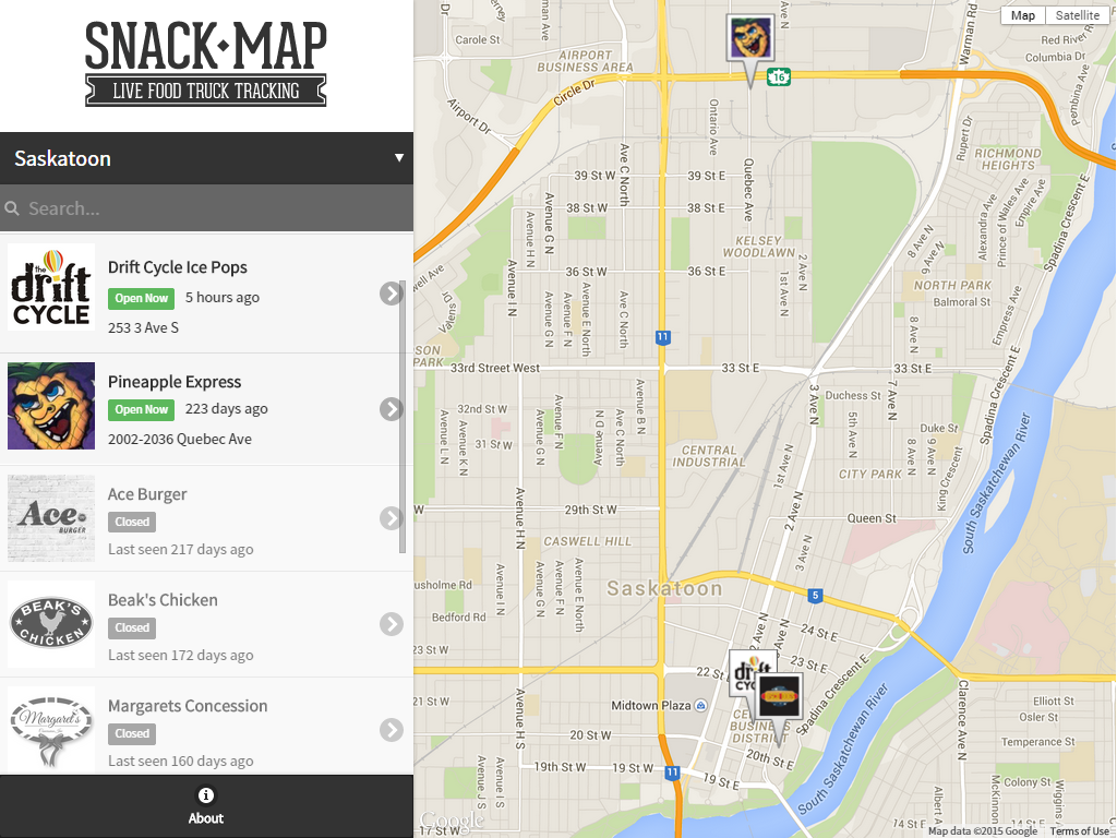 Snack Carte des pistes camions de nourriture et de chariots de nourriture dans votre ville, LIVE en utilisant le GPS.