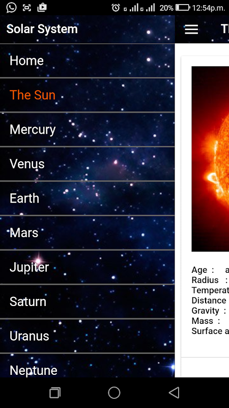 Cette application donne une information de notre system.App solaire fournir des informations de base et quelques faits intéressants sur chaque planète.