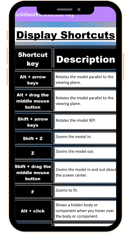 L'application de touche de raccourci Solidworks rendra tous les travaux dans le monde de la CAO plus faciles et plus rapides. Tous les raccourcis clavier de Solidworks Part, Assembly, Drawing sont très bien donnés. Ce qui accélérera votre travail. Les professionnels de tous les types d'ingénieurs mécaniques, civils et électriques seront très utiles. Cette touche de raccourci Solidworks Ap fonctionnera-t-elle pour toutes les versions de Solidworks. Il existe de nombreux raccourcis dans ces applications. En conséquence, votre vitesse de travail augmentera de 3 à 4 fois.