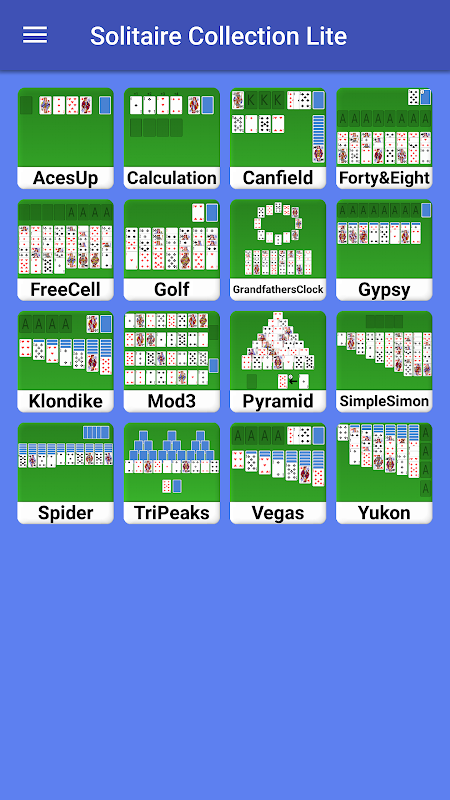 Lots of classic card games in one Solitaire Collection app. It's has 16 of hot solitaire game for you to choose as: Spider, FreeCell, Pyramid, ....