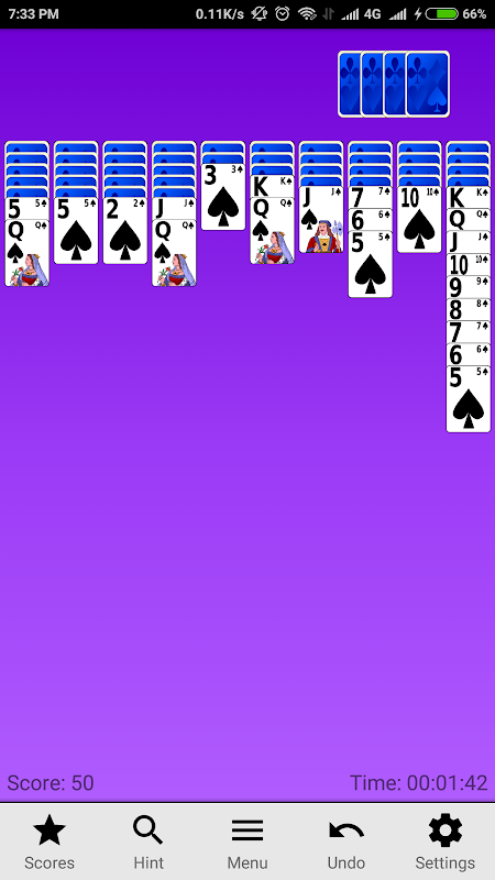 This game has a undo function to take back up to 20 card movements. A hint function shows you up to 3 possible card movements at once.