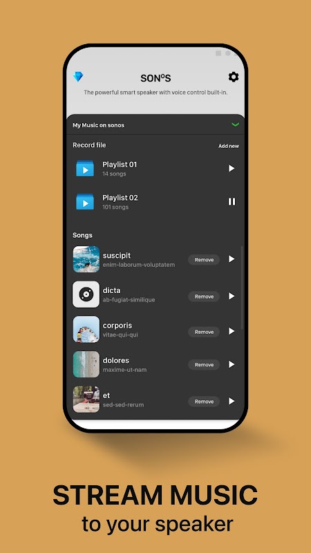 Améliorez votre expérience Sonos avec l'application ultime pour les enceintes Sonos S1 et S2. Transformez votre appareil mobile en un puissant contrôleur Sonos, doté d'un microphone en direct et d'une diffusion de musique fluide. Diffusez facilement de la musique de votre bibliothèque sur votre haut-parleur ou votre barre de son Sonos, garantissant une lecture de haute qualité sans limitation de distance, à condition que les deux appareils soient sur le même réseau Wi-Fi.