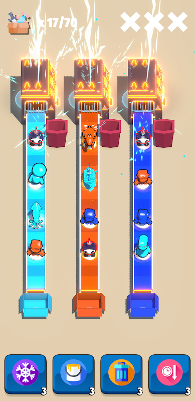 Une variété de jouets apparaissent sur les tapis roulants ! Votre tâche est de les trier par couleur afin qu'ils atterrissent tous dans les bonnes cases. Mais attention ! Les convoyeurs ne s'arrêtent jamais, et une seule erreur pourrait vous coûter la victoire !