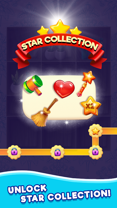 Visez haut et gagnez des étoiles en atteignant les scores cibles, démontrant ainsi votre maîtrise de la résolution dans le jeu de triple tri des marchandises.