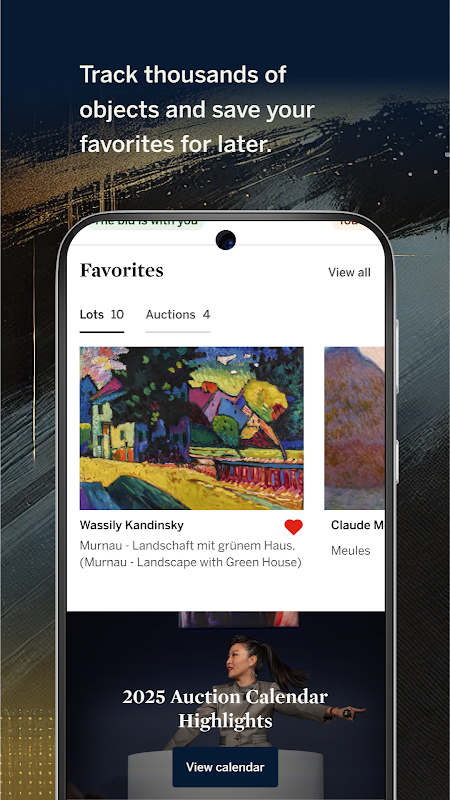 Des ventes aux enchères extraordinaires. Des trouvailles exceptionnelles. Où et quand vous le souhaitez. L'application Android Sotheby's offre aux collectionneurs un accès exceptionnel aux œuvres d'art, objets précieux, vins et bijoux les plus extraordinaires au monde, ainsi que l'expertise inégalée de nos spécialistes de renommée internationale.