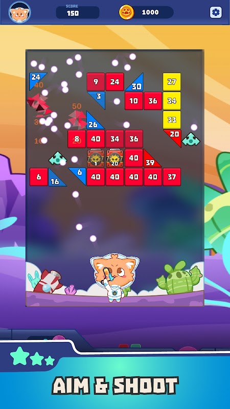 - Contrôlez Space Astro Cat pour lancer des boules cosmiques et briser les briques extraterrestres.