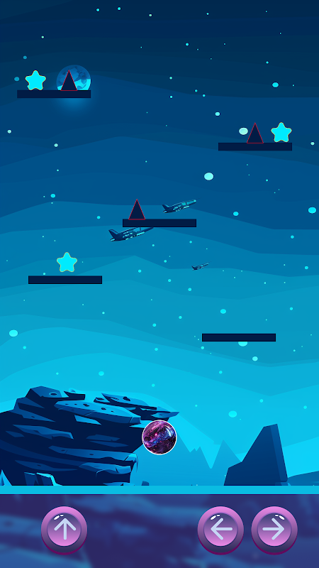 Space Ball est un jeu passionnant et magnifique, dont l'essence est de contrôler la balle dans l'espace, l'objectif principal est de collecter les étoiles qui se trouvent sur les plates-formes, mais ce n'est pas une tâche facile car elles sont gardées par des triangles maléfiques qui peuvent blesser la balle et le jeu recommencera, et le contrôle du saut n'est pas le même simplement parce que c'est l'espace, il n'y a pas de gravité, donc la balle peut effectuer un saut plusieurs fois, ce qui vous permet de grimper jusqu'à la plate-forme la plus haute et éventuellement d'obtenir la dernière étoile, de la belle musique et des sons, complétés par des vibrations qui vous aideront à vous immerger dans l'univers cosmique de Space Ball.