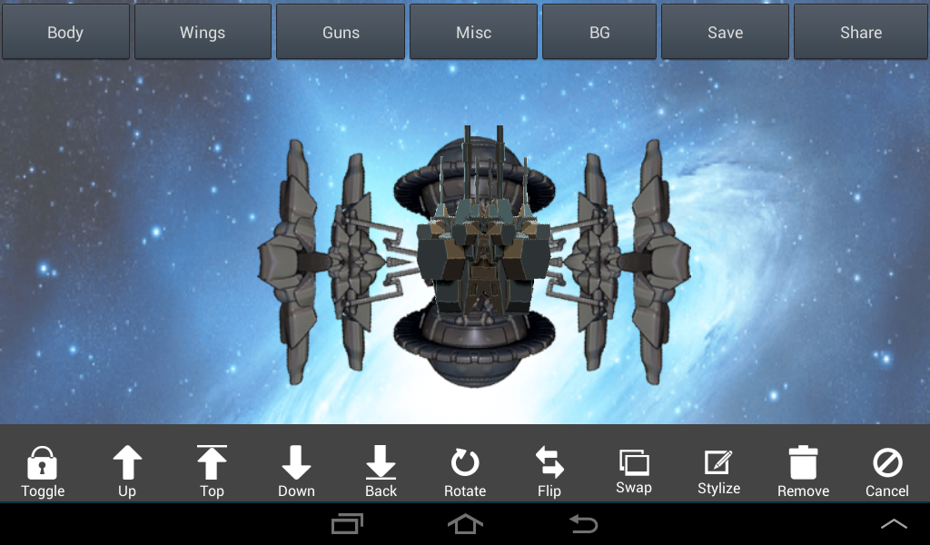 Spaceship Builder is a fun app that allows you to build awesome space or rocket ships which you can then share with your friends! Use your creativity to piece together craft part by part. Build as many ships as you want, there are many combinations!