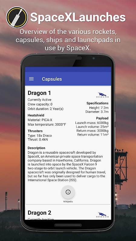 SpaceXLaunches helps you keep track of upcoming and previous SpaceX launches, the cores and capsules, as well as giving you a lot of information regarding their vehicles and launchpads.