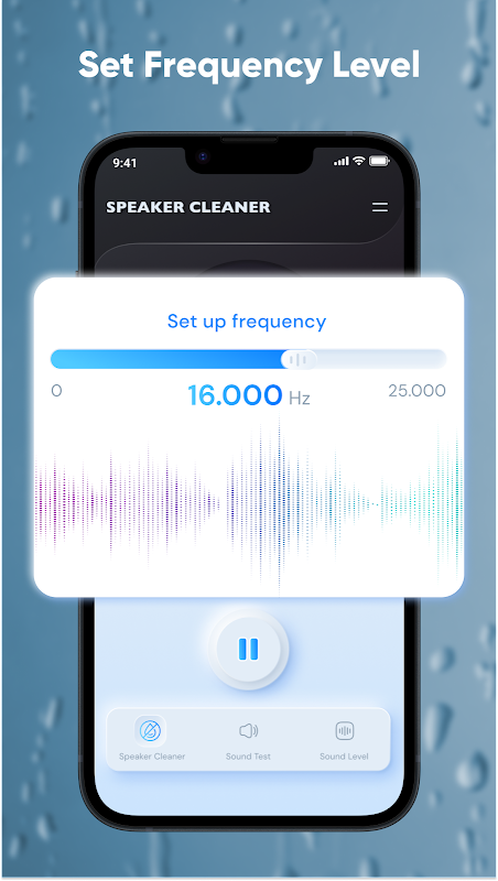 - Ajustez la fréquence jusqu'à un maximum de 25000 Hz pour nettoyer efficacement le haut-parleur de votre appareil. Nettoyant haut-parleur poussière et eau
