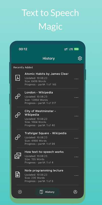 Écoutez avec notre générateur vocal AI des notes de texte ajoutées, n'importe quel site Web, PDF ou EPUB à tout moment avec la voix, la langue, la vitesse et bien plus encore souhaitées.