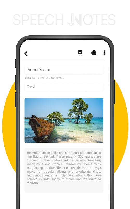 Les notes vocales permettent aux membres de l'équipe d'enregistrer automatiquement des notes, de configurer des thèmes clairs ou sombres, de gérer le nombre de mots et de copier les transcriptions créées dans le presse-papiers. Il permet aux employés d'utiliser la technologie de synthèse vocale dans plusieurs langues, dont l'anglais, l'allemand, l'espagnol, l'italien, le portugais, le français et l'arabe. Il permet aux utilisateurs d'exporter, de partager et de stocker les fichiers créés dans des e-mails, Google Drive et des documents Word.