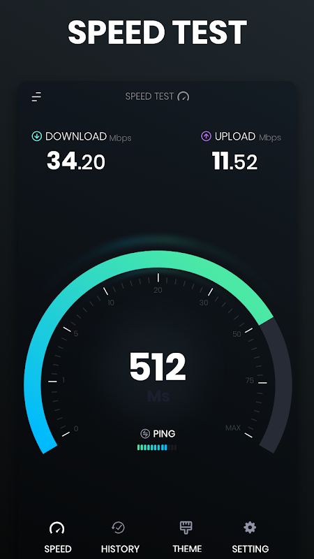 Speedtest app is the ultimate android speed test utility for evaluating your cellular (3G,4G,Ethernet, wifi) and All LTE technologies are supported. LTE, LTE Advanced dual-band, tri-band & more. A global server network and a smart speed test method that ensure accurate results.This easy-to-use speed test app provides consistent accurate download, upload, and ping results from any location , and Full QoS test: In few seconds, test your bitrate speed, latency, browsing speed and video streaming quality on your mobile device with one-tap ease.