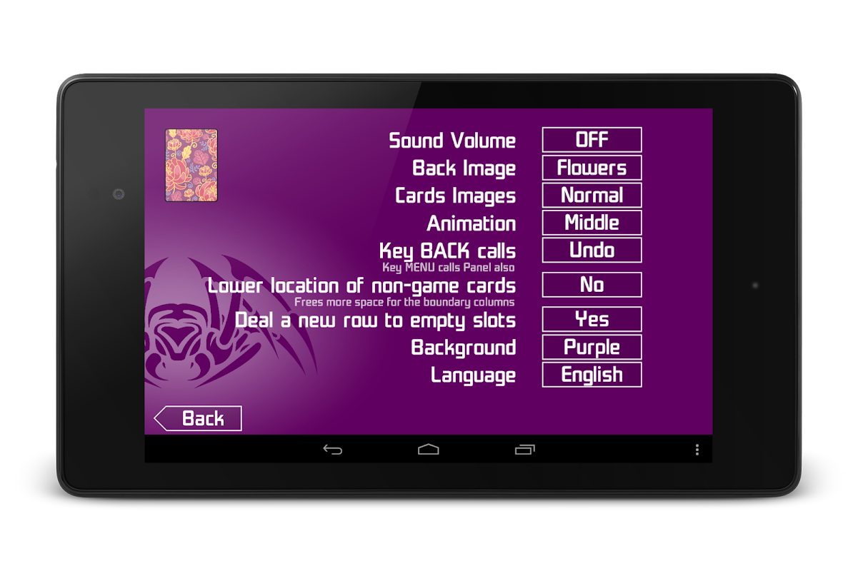 * Personnalisable back cartes et couleur de fond;