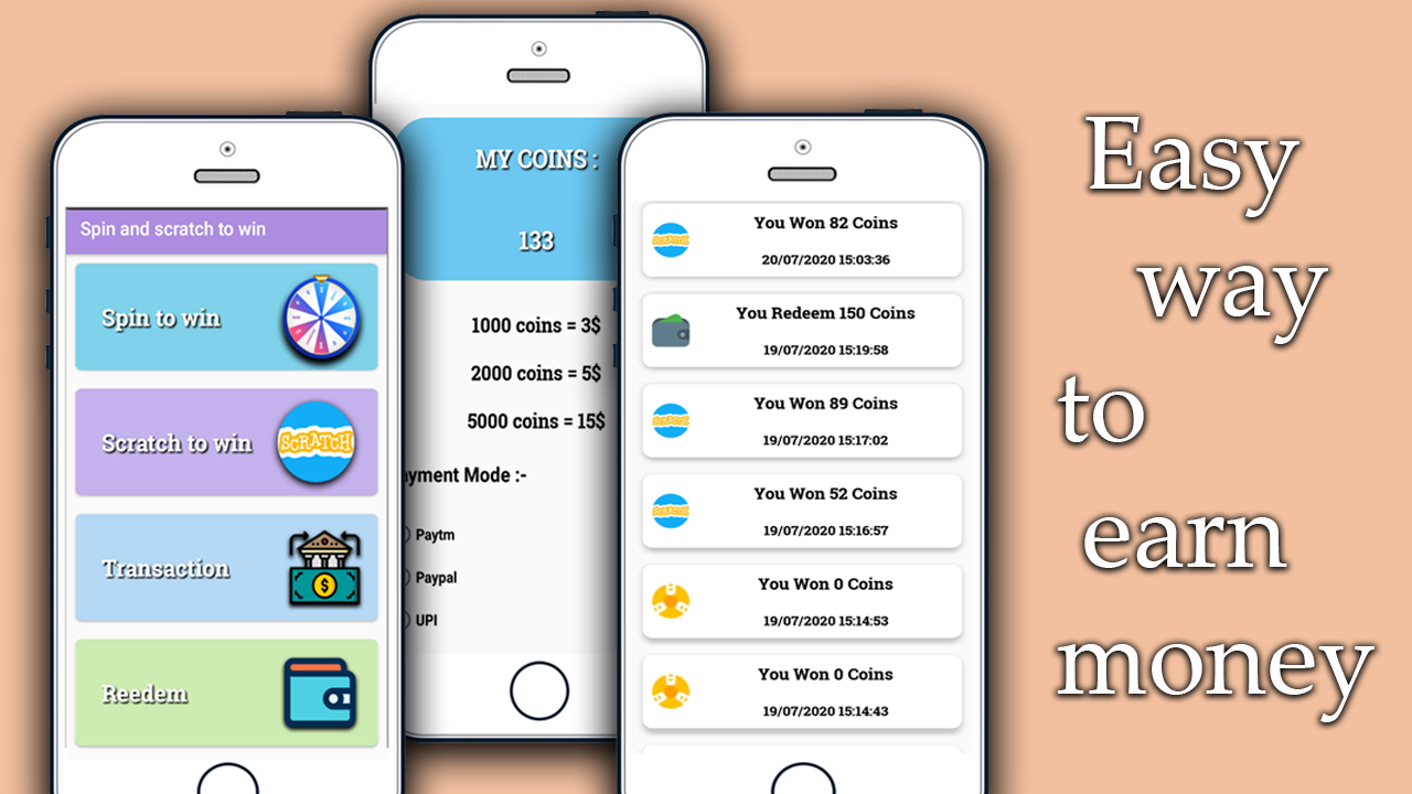 spin to win and scratch to win abdorable user interface.This is best application for all over app because this app give to all user real money.