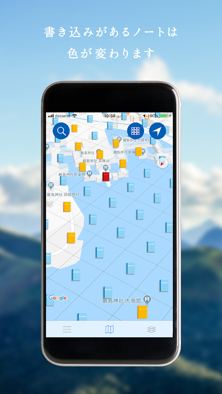 spinote(スピノート)は、「その場所でしか開けないノート」を、 世界中すべての場所に、30m×30mのマスごとに配置した、新しいWEBサービスです。