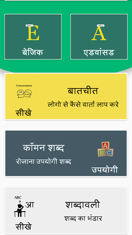 It will provide some basic topics, Structure for sentences that how can we use, vocabulary and proverbs.