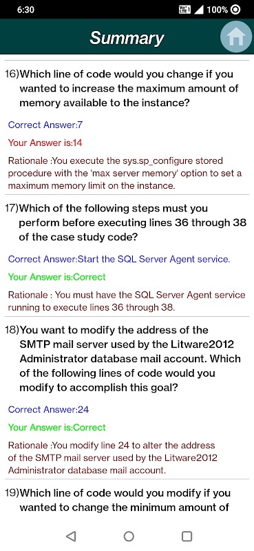 L'application gratuite SQL Server 2012 prouve les questions SQL Server Pratiquez pour aider SQL Developer. Dans l'application gratuite SQL Server 2012 fournissant 1500 questions multiples à choix multiples. Dans les questions couvertes par l'application gratuite de SQL Server 2012 SQL, PL / SQL, les questions secondaires de SQL Server et les questions secondaires de la base de données SQL.