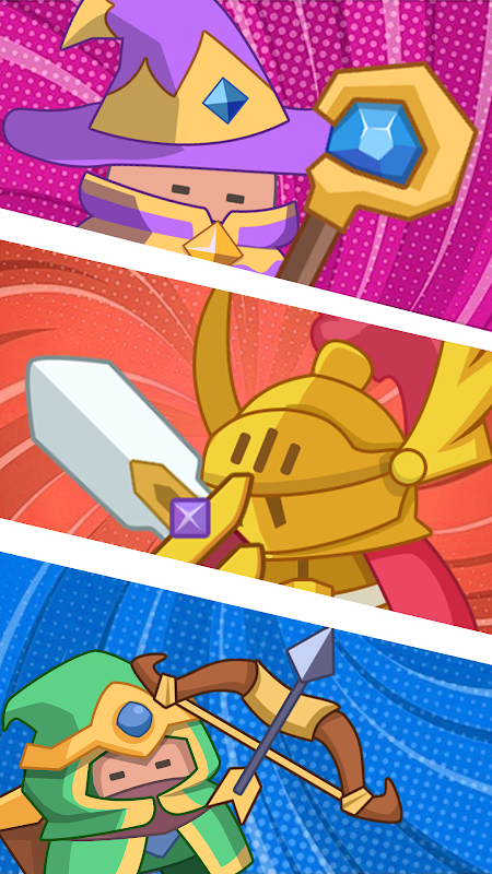 Customize heroes into Swordsmen, Archers, or Mages by equipping different gear.