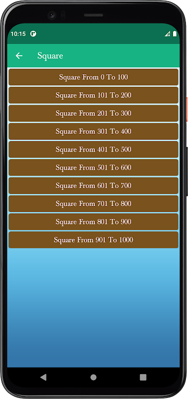 Cette application fournit la place, Racine carrée, Cube, Cube racine et factoriel d'un nombre de 1 à 1000.