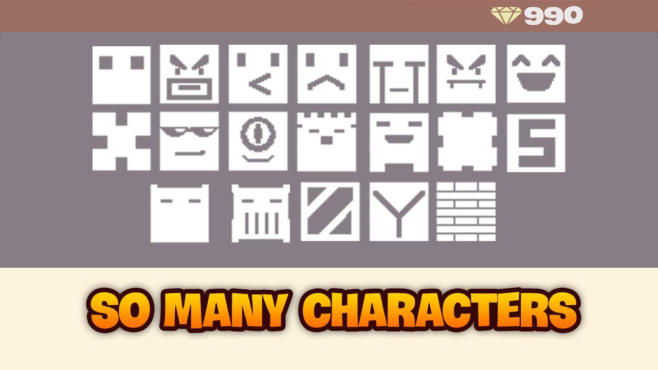 - The distinction of the obstacles and your Square will be simpler when you use diamond earned through each level to purchase other cute Squares in the store. When passing a level, you will receive 10 diamonds.