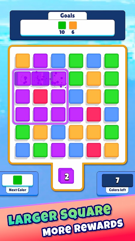 Square Match apporte une nouvelle tournure au genre de casse-tête classique. En tant que joueur, votre objectif est d'associer stratégiquement quatre couleurs dans une formation carrée pour briser les cubes et atteindre divers objectifs. Chaque niveau du jeu est conçu de manière unique avec des objectifs et des défis différents, ce qui rend votre voyage à travers le jeu à la fois passionnant et imprévisible.