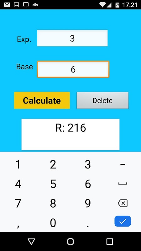 Application pour calculer la racine carrée, la racine cubique et la puissance des nombres
