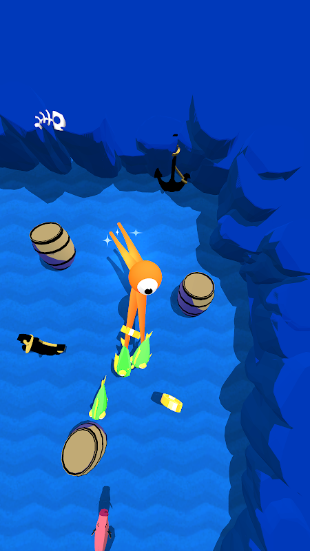 Faites glisser pour déplacer le calmar. Mangez tous les poissons et évitez les obstacles !