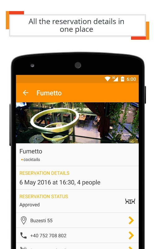The restaurants want to hear your opinion about the service and the experience in their locations. Use the app to tell them your opinion about these things at the end of the reservation.