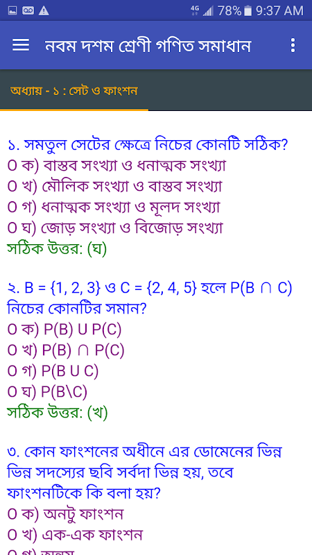 প্রতিটি প্রশ্নের সঠিক উত্তর প্রদান করা হয়েছে।
