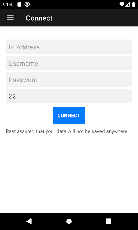 Pas de stockage de données : nous accordons une grande importance à votre confidentialité et à votre sécurité. SSH Connect ne stocke ni n'enregistre aucune de vos informations de connexion, garantissant ainsi que vos informations d'identification restent confidentielles.