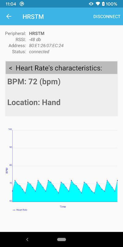 Il suffit de lancer le profil ST BLE, d’analyser le réseau et d’établir une connexion Bluetooth LE avec votre appareil à partir de la liste des appareils découverts. Puis sélectionnez le profil et visualisez les données reçues.