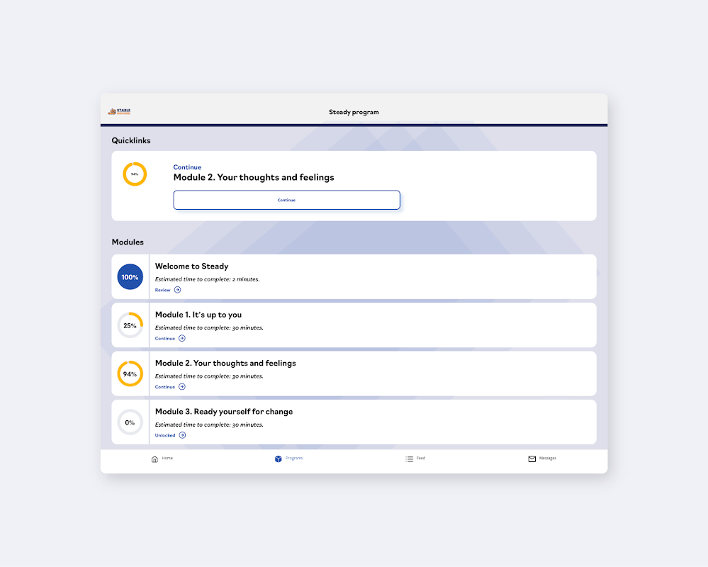Cette application compagnon Stable Ground offre un accès mobile facile à deux ressources du portail, la communauté en ligne et le programme Steady.