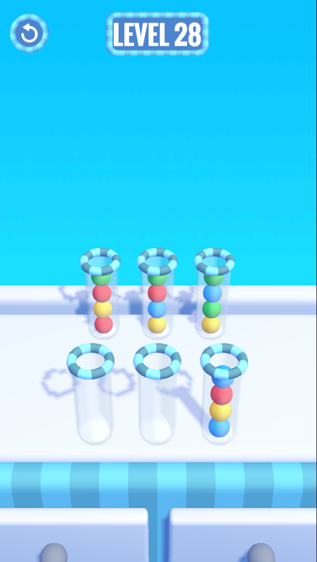 • Appuyez sur n'importe quel tube pour trier les balles par couleurs et empiler toutes les balles dans des tubes.