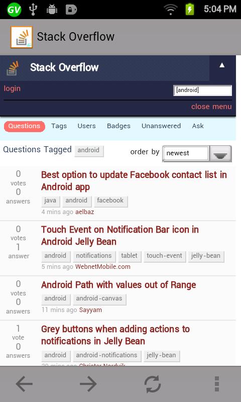 This is a simple Stack Overflow viewing client. Get online to stack overflow directly from android! Theming provided by ActionBarSherlock (http://abs.io)