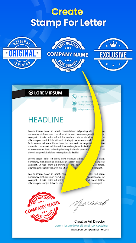 Stamp Maker - Image Watermark est l'application de création de tampons permettant de créer des tampons et des filigranes personnalisés sur vos photos préférées. Collection de cadres pour l'ajout de texte et la personnalisation. Vous pouvez personnaliser le texte, faire pivoter, retourner et supprimer votre image. Meilleure application de création de sceaux de timbres numériques. Ajoutez un autocollant et divers motifs de tampon pour rendre vos documents numériques authentiques. Il s'agit de l'application de création de timbres img 2023.